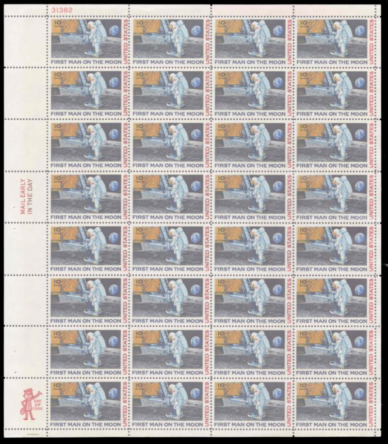 1969 Scott C76 10c First Man On The Moon Airmail Pane of 32 Plate 31382 Upper Left. Mint never hinged. ( Inv #: USAC076LX01) (Image)