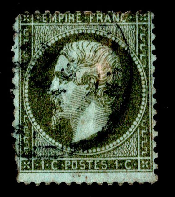 1860 Scott 12a 1c Napoleon III. Used with rounded corner. ( Inv #: FRA0012aS1) (Image)