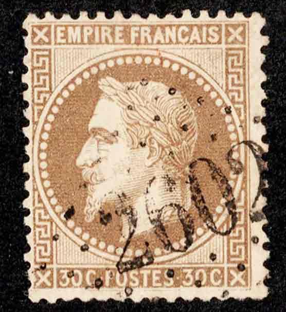 1867 Scott 34a 30c Dark Brown Napoleon III Empire Francais with 2602 Nantes Large Numeral Postmark. Used. ( Inv #: FRA0034aS1) (Image)