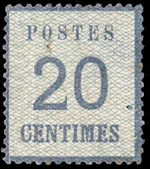 1870 Scott N13 20c Numeral Network With Point Down German Occupation of Alsace and Lorraine . Unused no gum. ( Inv #: FRAN13S1) (Image)