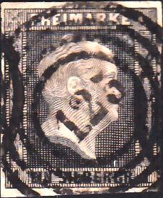 1850 Scott 3 1sg King Frederick William IV with 4 ring target 125 Biefeld cancel. Used. ( Inv #: GEP0003S5) (Image)