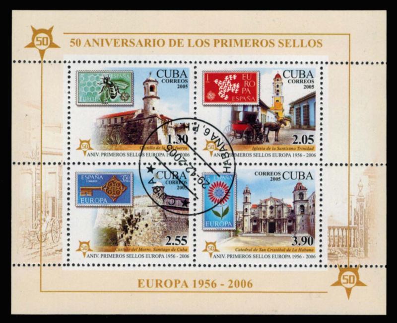 2005 Scott 4540-4543 1.30P, 2.05P, 2.55P and 3.90P Europa Stamps Souvenir Sheet. Used. ( Inv #: CUB4543aC1) (Image)