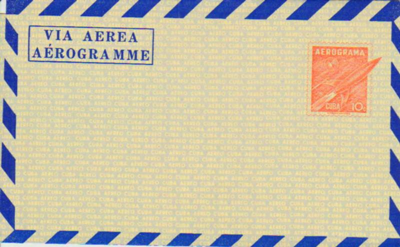 1958 Higgins & Gage FG2 10c Rocket Ship in Space Air Letter Sheet with blue lozenges and overlay. Unused. ( Inv #: CUBUFG02C2) (Image)