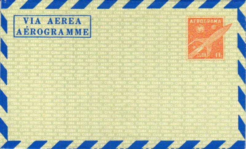 1958 Higgins & Gage FG3 11c Rocket Ship in Space Air Letter Sheet with blue lozenges and green overlay. Unused. ( Inv #: CUBUFG03C2) (Image)