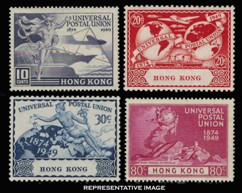 1949 Scott 180-183 10c, 20c, 30c and 80c Universal Postal Union. Unused lightly hinged. ( Inv #: HKG0180S1) (Image)