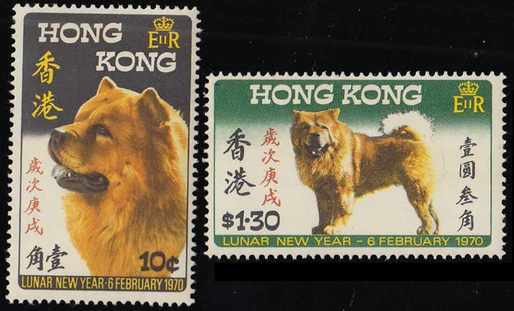 1970 Scott 253-254 10c and $1.30 1970 Lunar New Year Year of the Dog. Mint never hinged. ( Inv #: HKG0253S2) (Image)