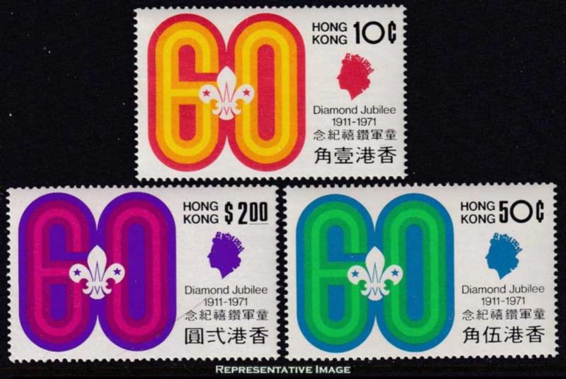 1971 Scott 262-264 10c, 50c and $2 Hong Kong Boy Scouts. Mint never hinged. ( Inv #: HKG0262S1) (Image)