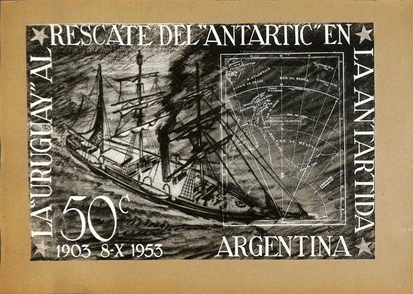 1953, Nordenskjold Rescue 50th Anniversary (Scott 620), enlarged photographic essay nearly identical to issued design, Very Fine, interesting collateral item for the Argentina or Polar collector. (Image)