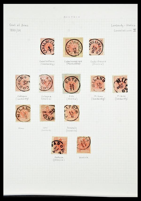 Lombardy-Venetia, Beautiful Cancels Collection, 1850-54, beautiful cancel collection on 33 stamps and two pairs on blank album pages in folder, fully imaged online; unavailable for in-person viewing. (PDF for this Lot) (Image)
