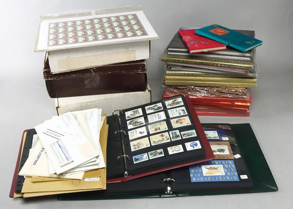 China (People's Republic), Comprehensive Mint Collection with Commemorative Year Sets, 1985-2000, features two albums (number) of Commemorative Year Sets, and one large box of mint sets in glassines; albums features a nearly complete collection spanning #1966-2947, with the sets excluded generally found elsewhere in this lot; various mint sets in original China Post mailers found throughout this lot, such as #2330-37, 2529, 2774A-B, and others; Stamps of China books include: 1987 (2), 1988 (2), 1989 (2), 1990 (2), 1991 (2), 1992 (2), 1993 (2), 1994 (2), 1995 (2), 1996 (2), 1997 (2), 1998 (3), and Hong Kong Sovereignty Commemorative Booklets (15); all items in very good condition; an excellent opportunity for resale. Shipping charges apply - weight 56.8 lbs. (Image)