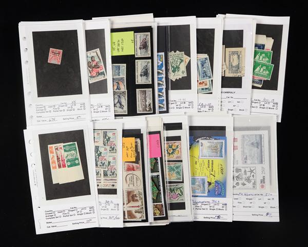 French Colonies, Dealers counter sheets 1899-1958, a few dozen counter sheets of fresh French Colonies better singles and sets; includes Reunion #318-321, Alaouites C5-C8, Cameroon 607-608 blocks, Chad C64-C66 imperforate, French India 24, French Polynesa 706b and C25-C27, Oceania B1-B2 as well as C21, FSAT 58-63 and C6, Australian Antarctic C7 and C26-C27, Guadeloupe 86-95, Morocco CB 1-10, Madagascar 34 bisect on piece, New Caledonia 1 and 12c (double surcharge and inverted), Monaco 5, Obock 44, and Syria 133-136, Fine to Very Fine. Shipping charges apply - weight 1.2 lbs. (PDF for this Lot) (Image)