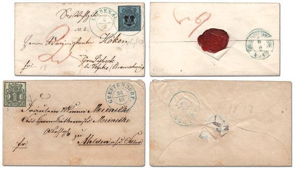 German States, Group of Interesting Covers, 21 covers including six used postal stationery entires, plus 5 early 20th century covers; States issues include Hanover, Oldenburg (4), Prussia (2), Saxony (4), Schleswig-Holstein (2), Thurn & Taxis, Württemberg and North German Confederation; the entires are Hanover (2), Mecklenburg-Schwerin, Oldenburg (2) and Saxony; generally clean and F-VF (see online images of the entire lot). Shipping charges apply - weight 0.6 lbs. (PDF for this Lot) (Image)