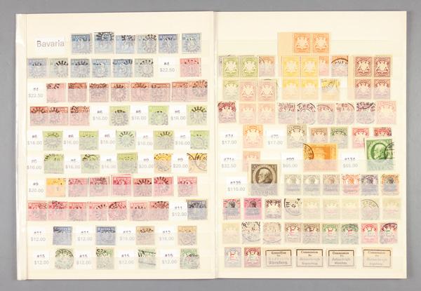 German States, Before Imperial Germany 1851-1870, Mixed collection of used and unused German States on stockbook pages; Bavaria #2//227, J6//J13a, and O1//O5; Brunswick 24//26; Saxony 16//18; Thurn & Taxis 10//61; and Wurttemberg 15/71; about 250 stamps with a catalog of $1,650, Fine to Very Fine. (Image)