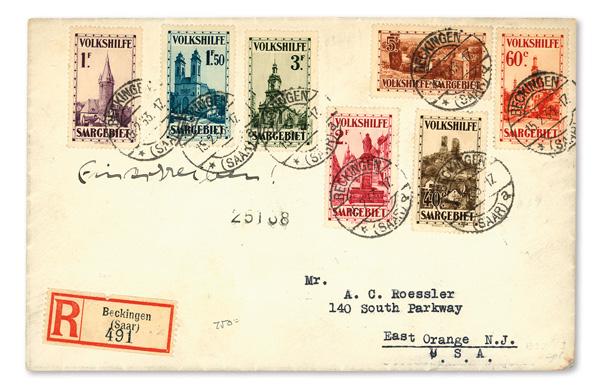 1932 Volkshilfe complete (Scott B37-B43), a difficult find on cover with a Scott catalog value of $650+; some slight wear to lower right-hand corner, but otherwise in good condition; features original contents. Michel 161-167. (Image)