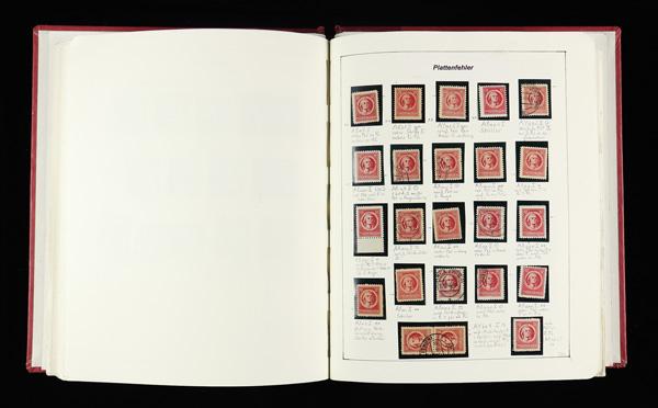 Soviet Zone - Thüringen, "Plattenfehler" Exhaustive Mint & Used Collection of Plate Varieties, 1945, Homemade collection on Schaubek pages with all stamps in black mounts and each one identified by Michel number. A mix of mint & used with many in pairs and blocks; a goldmine for the flyspecker philatelist, generally Fine to Very Fine, viewable in its entirety. Shipping charges apply - weight 3.6 lbs. (Video for this lot) (Image)