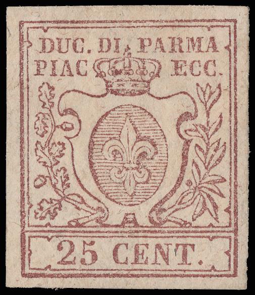 1857, 25c red brown (Scott 10), o.g., remarkably fresh with large balanced margins, Very Fine to Extremely Fine, signed A. Brun. Sassone 10. Scott $675. (Image)