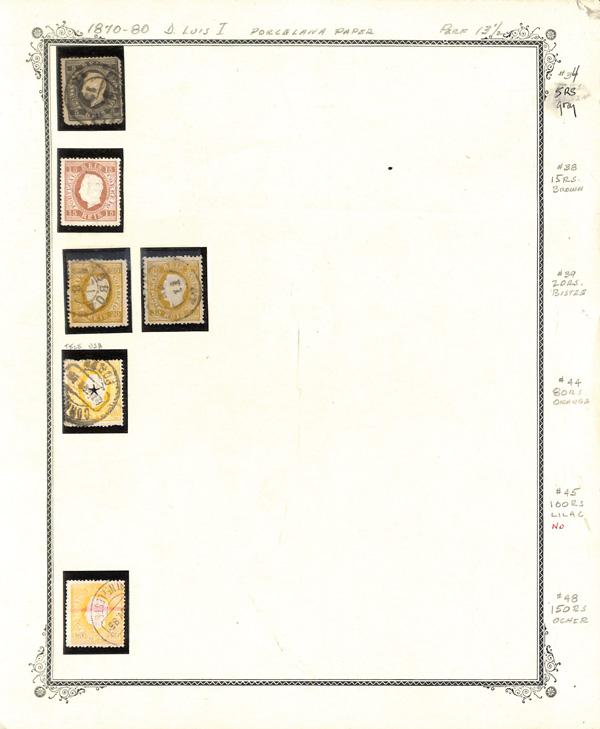 Portugal, King Luis I Study, 1870-1885, 50+ postally used examples of the Luis I adhesive with Porcelana paper, Stout paper, White paper, and Liso paper; includes #34, 36, 38-42, 44, 45, 48, 49, 50, and 51; unchecked for scarce town cancels; consignor catalog $1,625, Fine to Very Fine. Shipping charges apply - weight 0.6 lbs. (PDF for this Lot) (Image)