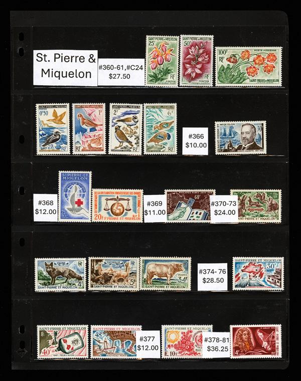 St. Pierre & Miquelon, Interesting Intaglio 1962-1976, 90+ MNH issues in complete sets on Vario pages; includes #360//452, C24//C60, and J78//J82; each a minature piece of art; Catalog $2,110, Very Fine. (PDF for this Lot) (Image)