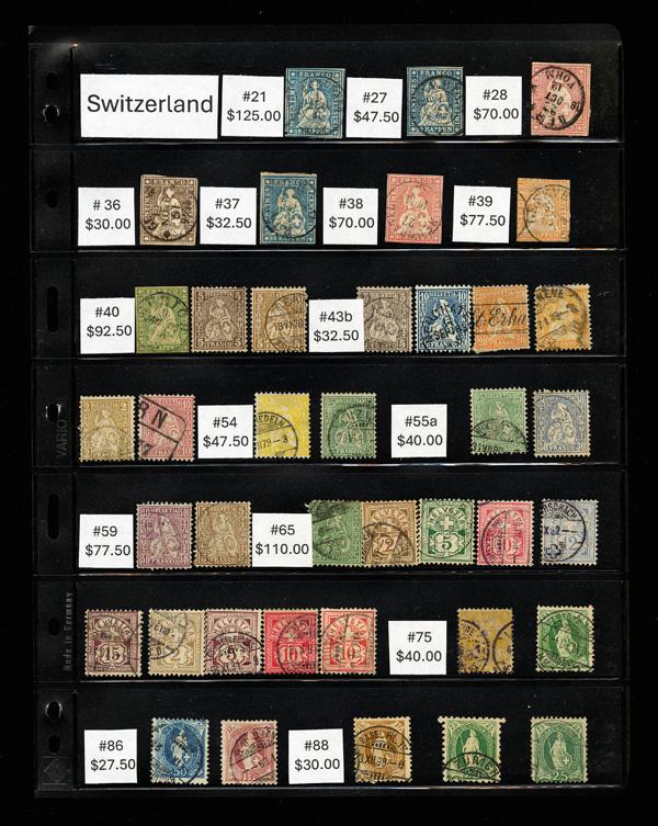 Switzerland, Healthy used collection 1854-1974, Over 1,150 Swiss used with minimal duplication on black stock pages; range includes #21//1029, B15//B594, C3//C39, J2//J63a, O27//O44, 2O4//7O27, and S1//S15a; catalog $4,650+, Fine to Very Fine. (PDF for this Lot) (Image)