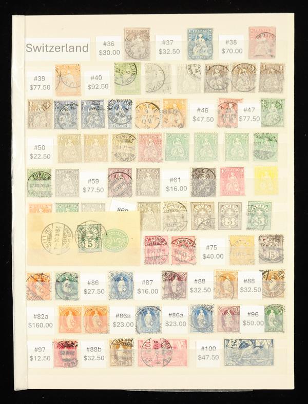 Switzerland, Beautiful early group 1858-1924, Mixed mint and postally used collection of about 100 stamps from Switzerland; items ranged from #36//203, B1//B236, C8//C26, J2//J27, and 1O9//1O15; catalog $1,325, Fine to Very Fine. (Image)