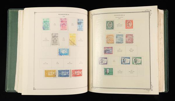 Venezuela, Solid Collection 1865-1976, Scott Specialty album packed with both Venezuela and adhesives from Uruguay; Venezuela very well populated from 1893 through the 1950s, Air Post moderately filled, also a few Semi Postal and Revenue stamps; included are about 50 album pages, some from an ancient album, sporting some of the earliest (1866) imperf and perforated stamps, and a nice selection of Air Post; the result of a lifetime's effort, Fine to Very Fine. Shipping charges apply - weight 6.6 lbs. (Video for this lot) (Image)