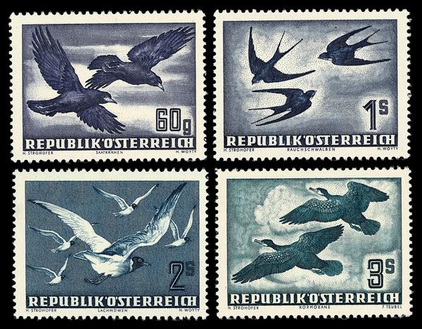 Airmail, 1950-53, Birds, 60g to 20s complete (Scott C54-C60), set of 7, o.g., never hinged, Extremely Fine. Michel 955-956,968,984-987. Scott $267. (Image)