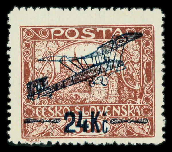 Airmail, 1920, 24kr on 500h red brown, perf 13¾ x 13½ (Scott C5a), o.g., hinge remnant (handstamp on gum), Fine to Very Fine, signed A. Diena. Scott $150. (Image)