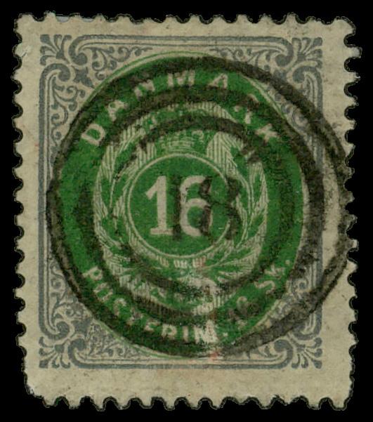 1871, Crowned Numeral, 16sk gray & green, perf. 14 x 13½ (Scott 20), Fine to Very Fine. Michel 20A. Facit 24. Scott $175. (Image)
