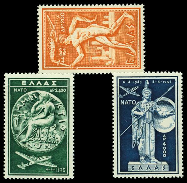 Airmail, 1954, N.A.T.O. complete (Scott C71-C73), set of 3, o.g., never hinged, Very Fine. Michel 615-617. Scott $110. (Image)