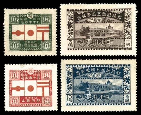 1921, Postal Services Anniversary complete (Scott 163-166), o.g., hinge remnants, Extremely Fine. J.S.C.A. C28-31. Scott $330. (Image)