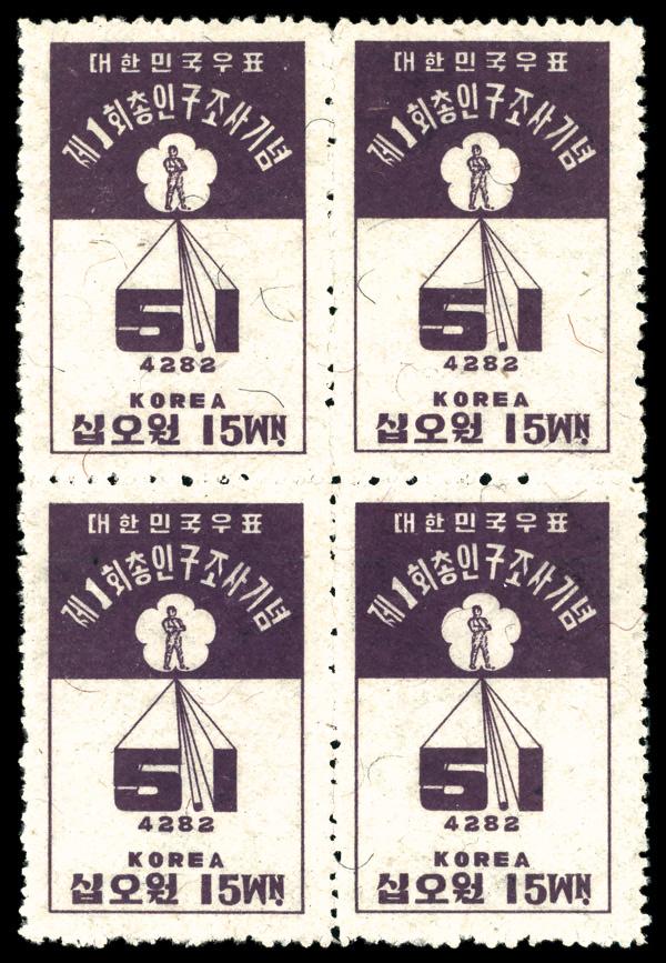 1949, 15w purple Census (Scott 96), block of 4, o.g., never hinged, Very Fine to Extremely Fine. Scott $290. (Image)