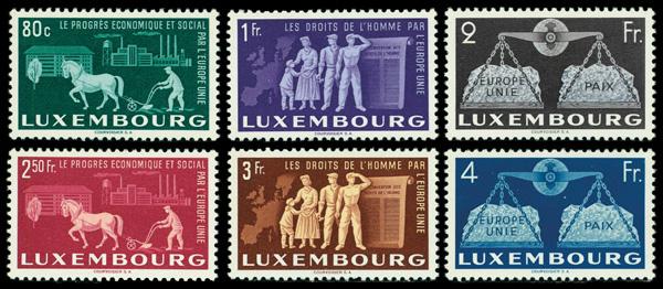 1951, United Europe, complete set (Scott 272-277), set of 6, o.g., never hinged, Extremely Fine. Scott $175. (Image)