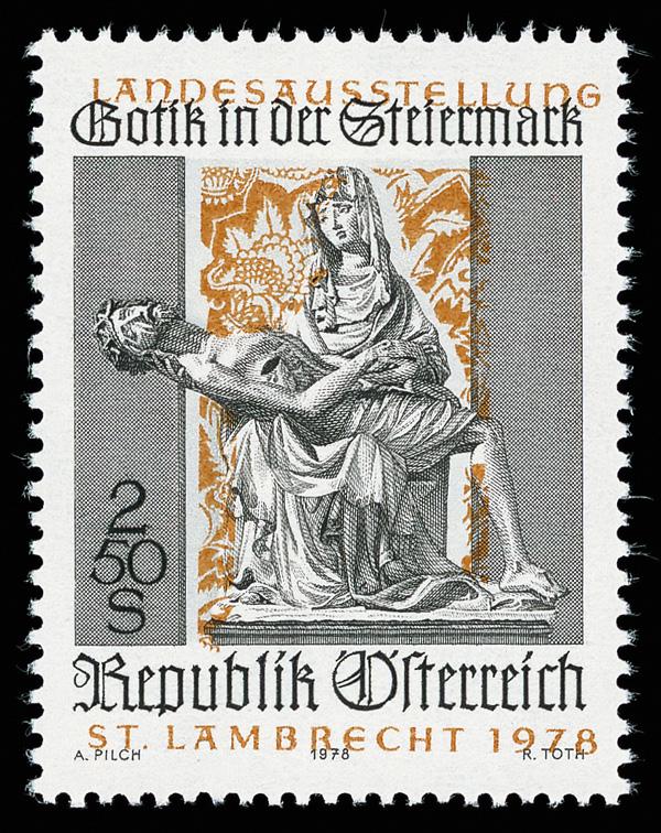 1978, Gothic Art Exhibition, brown gold shifted to right (Scott 1081 var.), o.g., never hinged, pristine and attractive, an uncommon modern misregistration, Very Fine. ANK 1607 V; €700 ($760). (Image)
