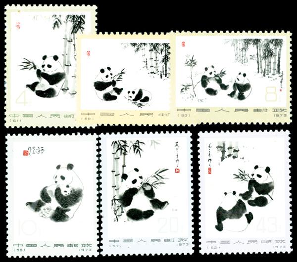 1973, Giant Pandas (N14) complete (Scott 1108-1113), complete set of singles, o.g., never hinged, Very Fine. Yang N57-62. Scott $220. (Image)