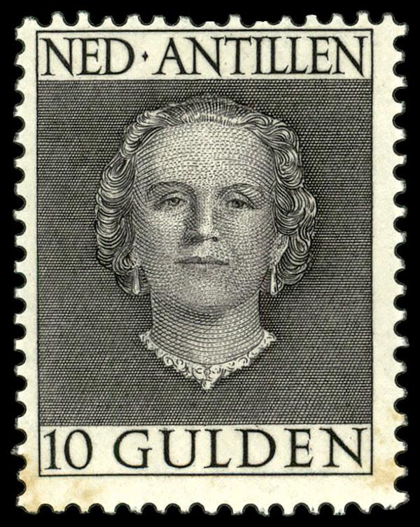 1950, Queen Juliana. 10g dark violet brown (Scott 229), single, o.g., never hinged, Fine to Very Fine. Scott $190. (Image)