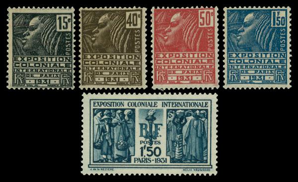 1930-31, Colonial Exposition complete (Scott 258-262), set of 5, o.g., never hinged, Fine to Very Fine. Yvert 270-274. Scott $125. (Image)