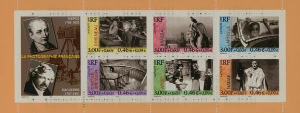 1999, Famous Personalities—Photography, doubled impression (Scott B696a var), complete unexploded booklet, unfolded; doubling on five of the six stamps, o.g., never hinged, Post Office fresh, Very Fine, an interesting modern error, accompanied by copy of Feldman F.C.N.P. certificate. Maury 3249Aa; €1,650 ($1,850). (Image)