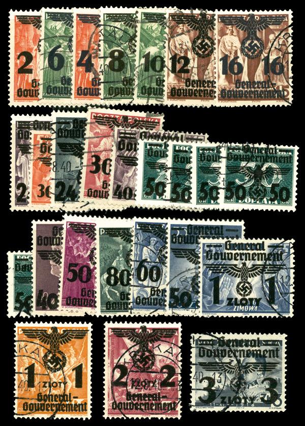 1940, 20th anniversary of Poland independence over printed complete (Scott N30-N55), complete set of singles, Very Fine. Scott $155. (Image)