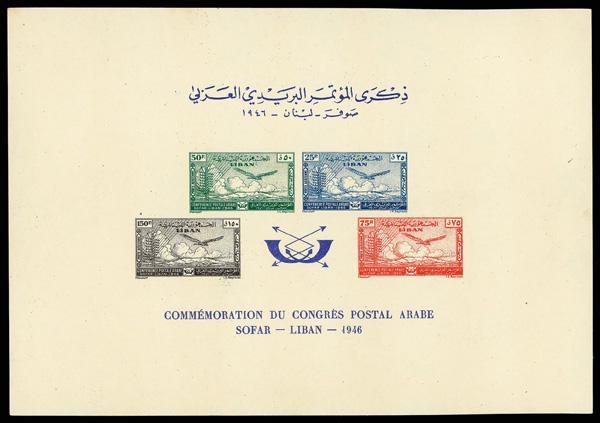 1946, Arab Postal Congress, souvenir sheet (Scott C111-C114), o.g., lightly hinged, Extremely Fine. Michel B19. (Image)
