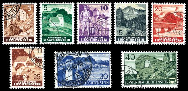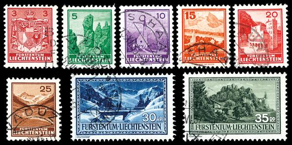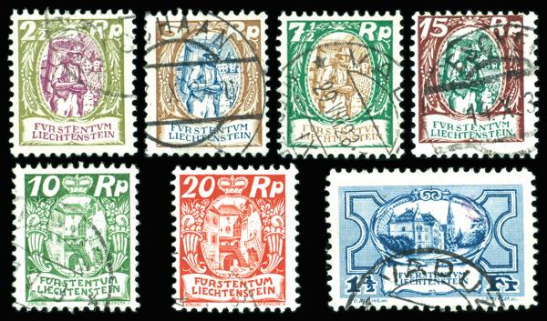 1924-28, Winegrower and Vaduz, 2½rp to 1½fr complete (Scott 74-80), set of 7, Fine to Very Fine. Michel 65-71. Zumstein 64-70. Scott $158. (Image)