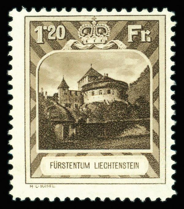 1930, 1.20fr Vaduz Castle, perf. 11½ (Scott 105b), o.g., hinged, Fine to Very Fine. Michel 105 B. Zumstein 95B. Scott $160. (Image)