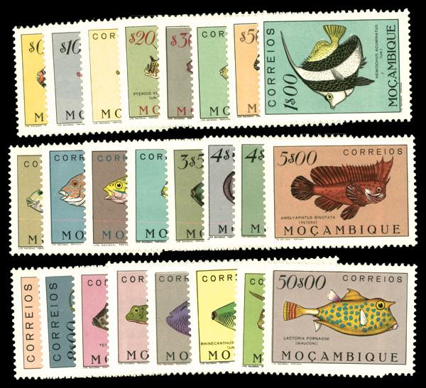 1951, Fish 5¢-50e complete (Scott 332-355), complete set of singles, o.g., never hinged, Very Fine. Scott $164. (Image)