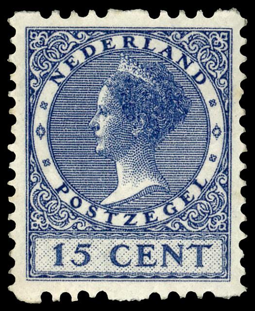 1925, Queen Wilhelmina, 15¢ ultramarine (Scott 153a), single, o.g., never hinged, Fine to Very Fine. Scott $225. (Image)