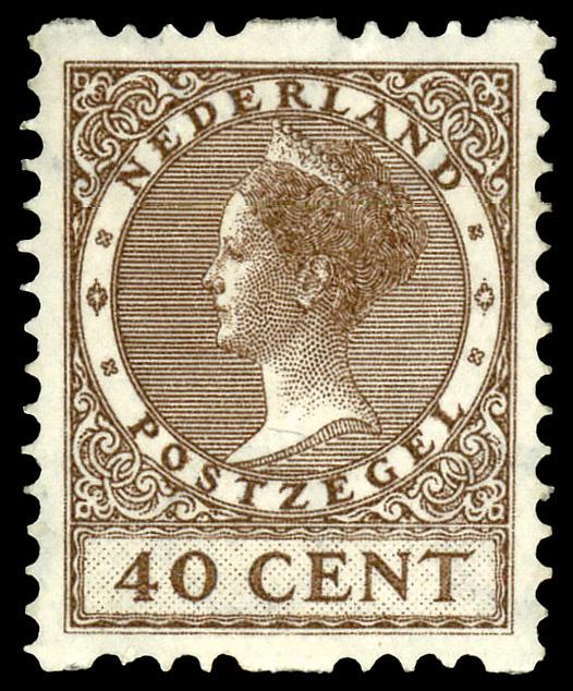 1926, Wilhelmina 40¢ deep brown syncopated type A (Scott 191a), single, o.g., never hinged, Very Fine. Scott $100. (Image)