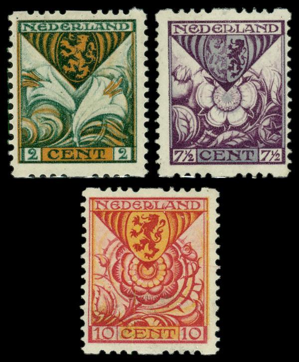 1925, 2c-10c Charity complete, syncopated perfs (Scott B9a-B11a), complete set of singles, o.g., never hinged, Fine to Very Fine. Michel 164B-166B. NVPH R71-73. Scott $300. (Image)