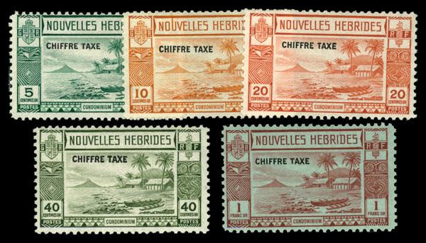 1938, Beach scenes complete (Scott J6-J10), complete set of singles, o.g., lightly hinged, Fine to Very Fine. Scott $103. (Image)