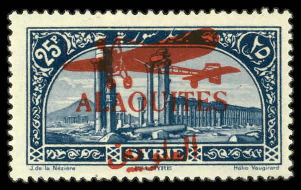 1929, Syria 25p ultramarine overprinted (Scott C19), single, o.g., hinged, Fine to Very Fine. Scott $53. (Image)