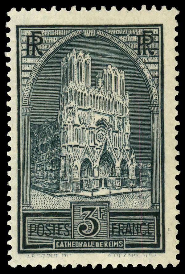 1930, Reims Cathedral, 3fr dark gray, type II (Scott 247A), single, o.g., hinged, Fine to Very Fine. Yvert 259a. Scott $125. (Image)
