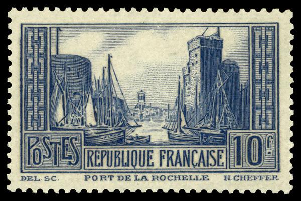 1929, La Rochelle, 10fr light ultramarine, type I (Scott 251), single, o.g., hinged, Fine to Very Fine. Yvert 261b. Scott $95. (Image)