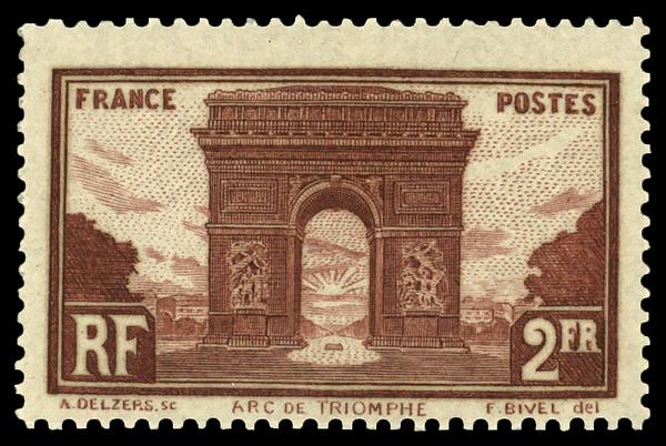 1931, Arc de Triomphe, 2fr red brown (Scott 263), single, o.g., never hinged, Fine to Very Fine. Yvert 258. Scott $80. (Image)
